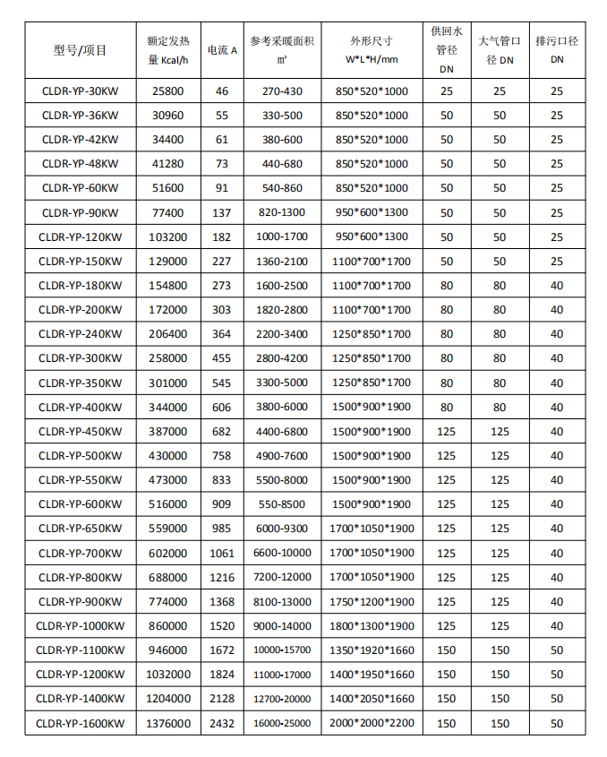 9.工作壓力;常壓(開放式)。如承壓系統(tǒng),只需在系統(tǒng)上配置板式換熱器即可實現(xiàn)鍋爐的常壓安全運行。