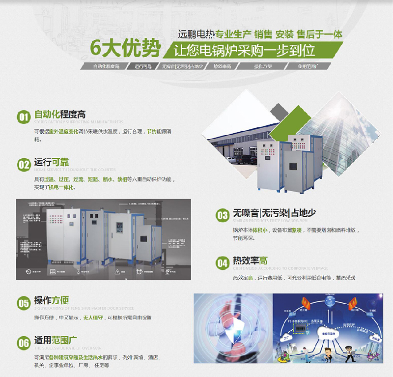 沈陽遠(yuǎn)鵬電熱供水設(shè)備工程安裝有限公司是一家電采暖產(chǎn)品研發(fā)、生產(chǎn)、銷售、采暖方案設(shè)計(jì)、電鍋爐工程安裝、售后服務(wù)于一體的綜合型企業(yè)。經(jīng)過多年的潛心經(jīng)營,公司以專業(yè)的隊(duì)伍、嚴(yán)謹(jǐn)?shù)墓芾怼⒊康纳a(chǎn)加工設(shè)備,受到很多使用客戶的好評。